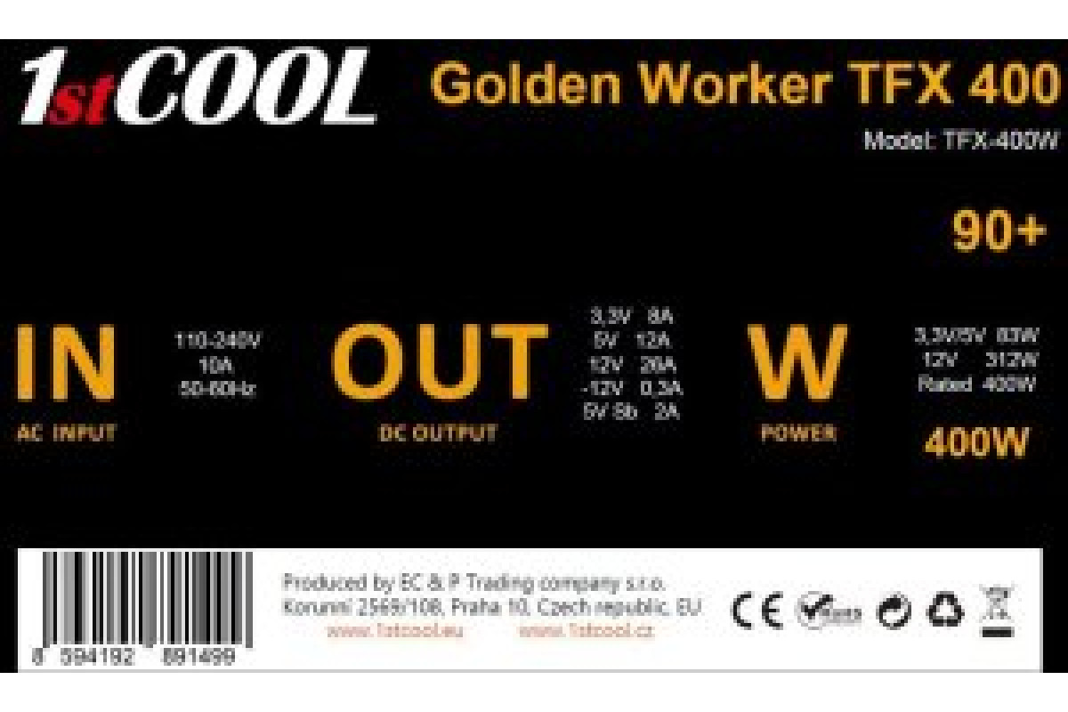 1stCOOL Golden Worker TFX 400 88+, 400W, TFX, czarny