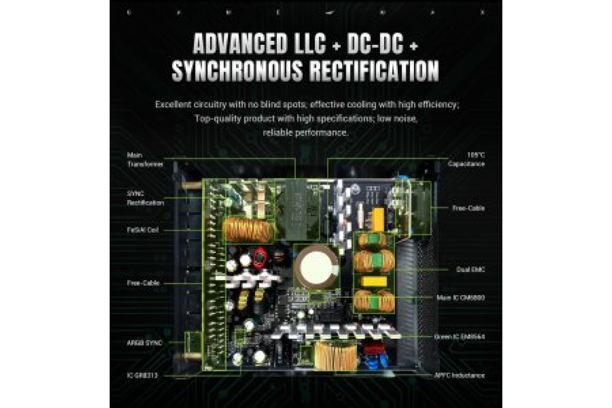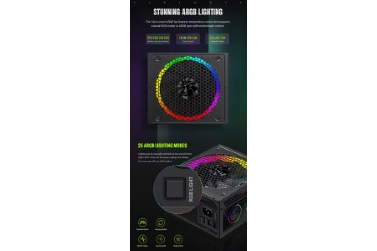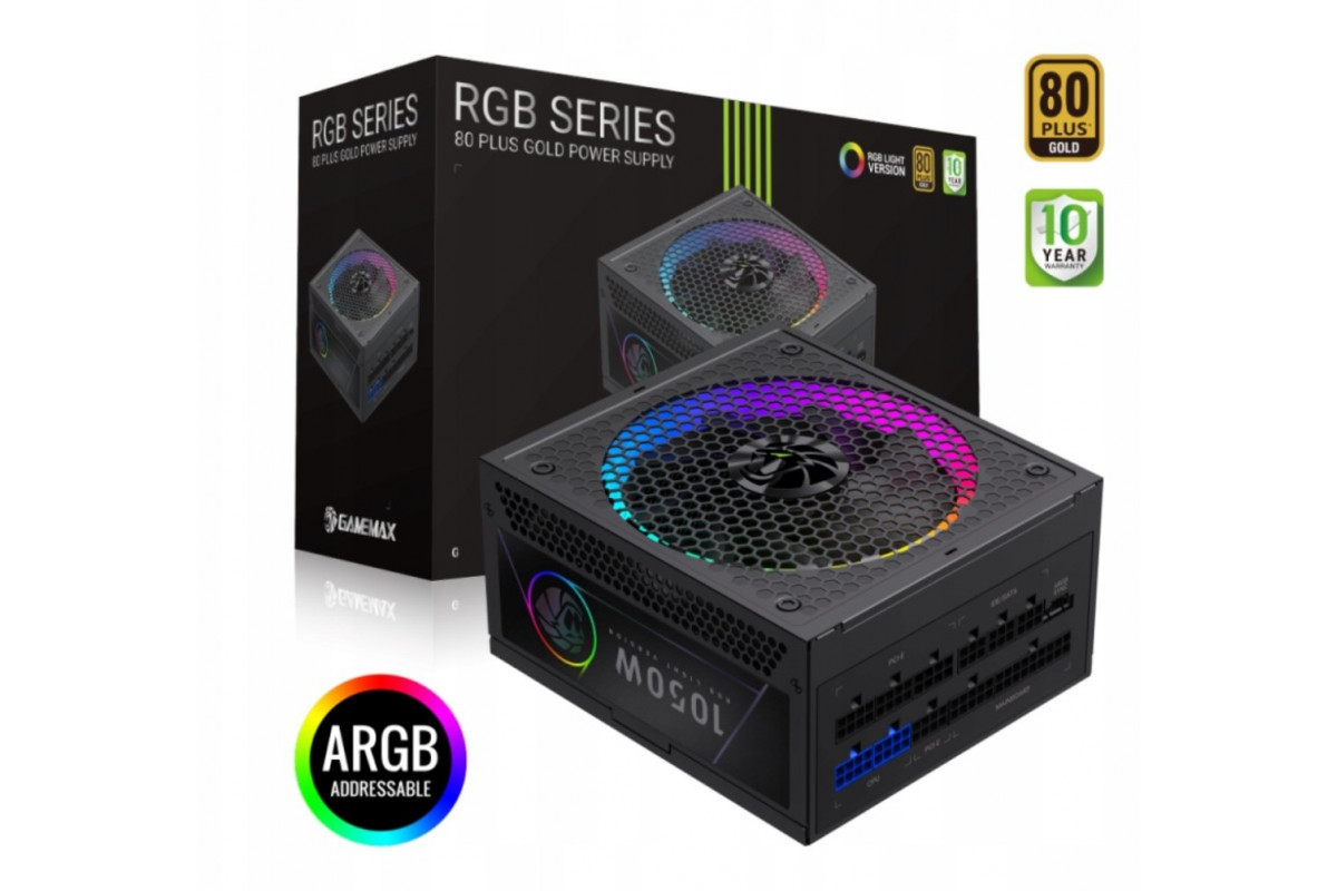 GameMax Gamemax Power Supply, 80 PLUS, Gold | RGB 1050G | 1050 W