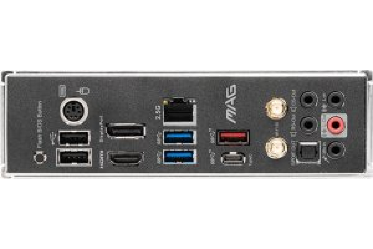 DisplayPort x1 HDMI x1 PS/2 (tastastūra/Pele) x1 RJ-45 x1 S/PDIF Optiskais x1 USB 2.0 x2 USB 3.2 Gen 1 (3.0/3.1 Gen 1) x2 USB 3.2 Gen 2 (3.1 Gen 2) x1 USB-C 3.2 Gen 2 (3.1 Gen 2) x1 Matesplates savienotājs anteny WiFi x2 Matesplates savienotājs audio x5