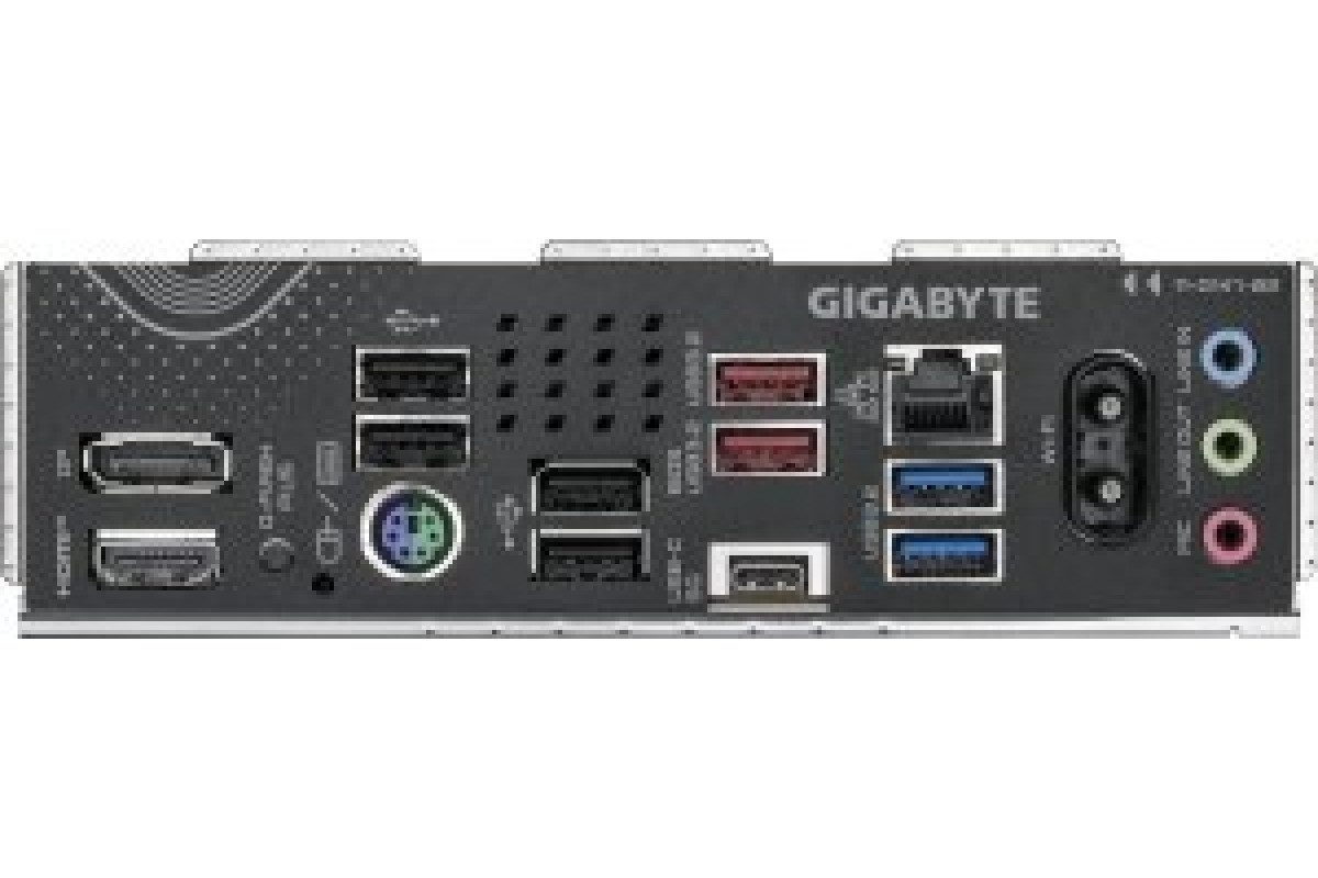 DisplayPort x1 HDMI x1 Poga Q-Flash Plus x1 PS/2 (tastastūra/Pele) x1 RJ-45 x1 USB 2.0 x4 USB 3.2 Gen 1 (3.0/3.1 Gen 1) x2 USB 3.2 Gen 2 (3.1 Gen 2) x2 USB-C 3.2 Gen 1 (3.0/3.1 Gen 1) x1 Matesplates savienotājs anteny WiFi x2 Matesplates savienotājs audio x3
