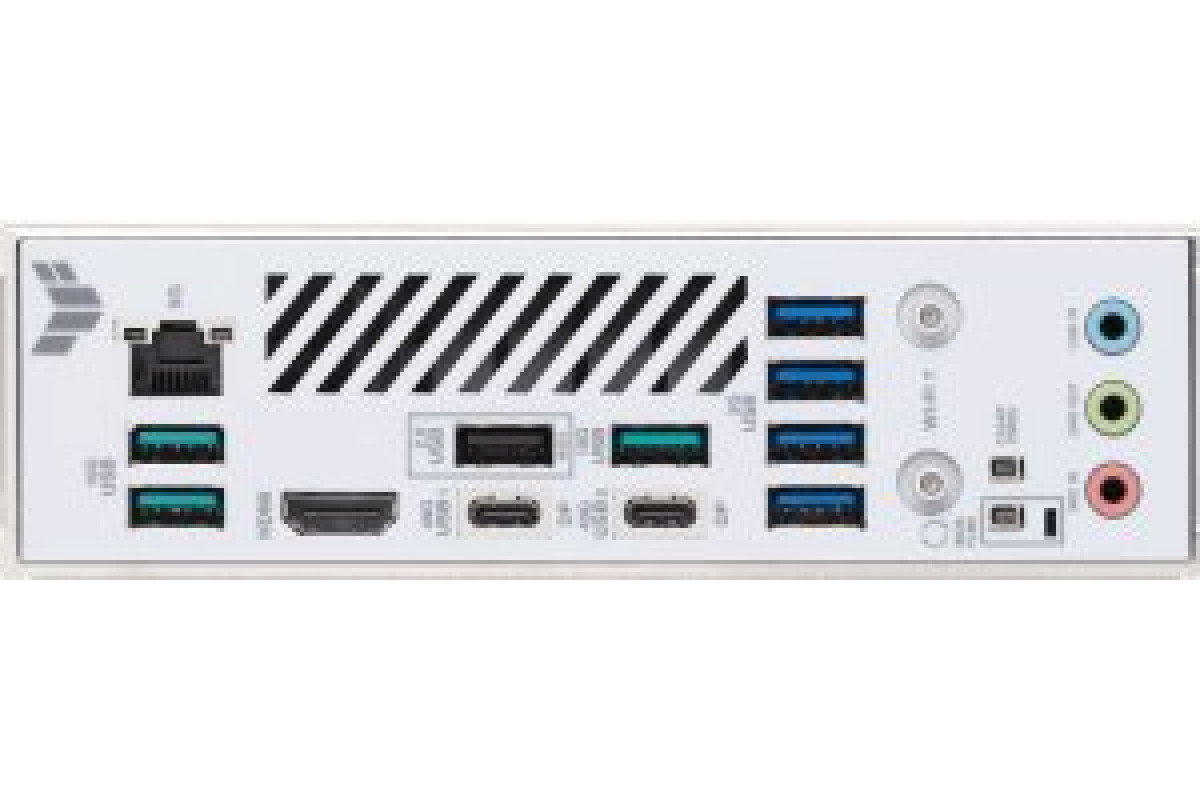 HDMI x1 Poga BIOS Flashback x1 Poga Clear CMOS x1 RJ-45 x1 USB 2.0 x1 USB 3.2 Gen 1 (3.0/3.1 Gen 1) x4 USB 3.2 Gen 2 (3.1 Gen 2) x3 USB4 x2 Matesplates savienotājs anteny WiFi x2 Matesplates savienotājs audio x3