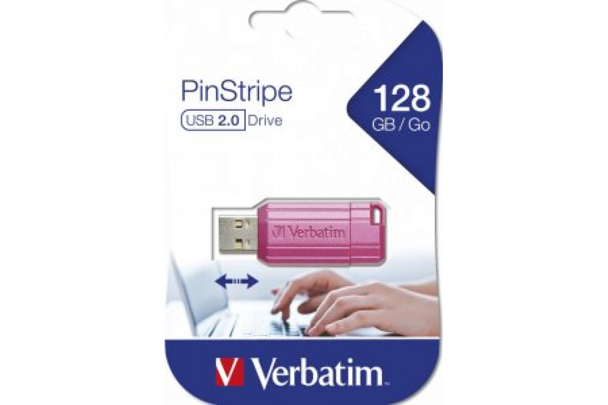 Pendrive Verbatim Verbatim USB flash disk, USB 2.0, 128GB, Store,N,Go PinStripe, różowy, 49460, do archiwizacji danych
