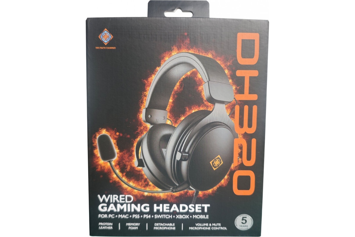 Deltaco DH320 bezprzewodowe słuchawki gaming DELTACO GAMING ze skóry złącze 3.5mm regulatory głośności i wyciszenia mikrofonu GAM-190 4222403