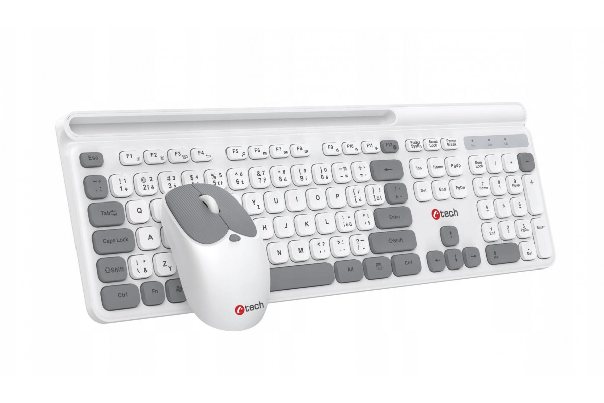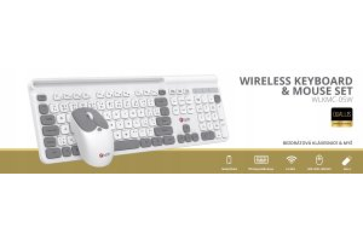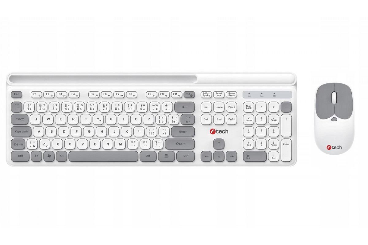 C-Tech C-TECH klawiatura z myszą WLKMC-05W, Bezdrátowy set 2.4GHz, CZ, biała