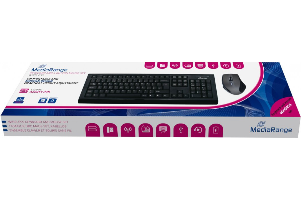 MediaRange Zestaw klawiatur + optymalna 5-przyciskowa mysz bezprzewodowa sw
