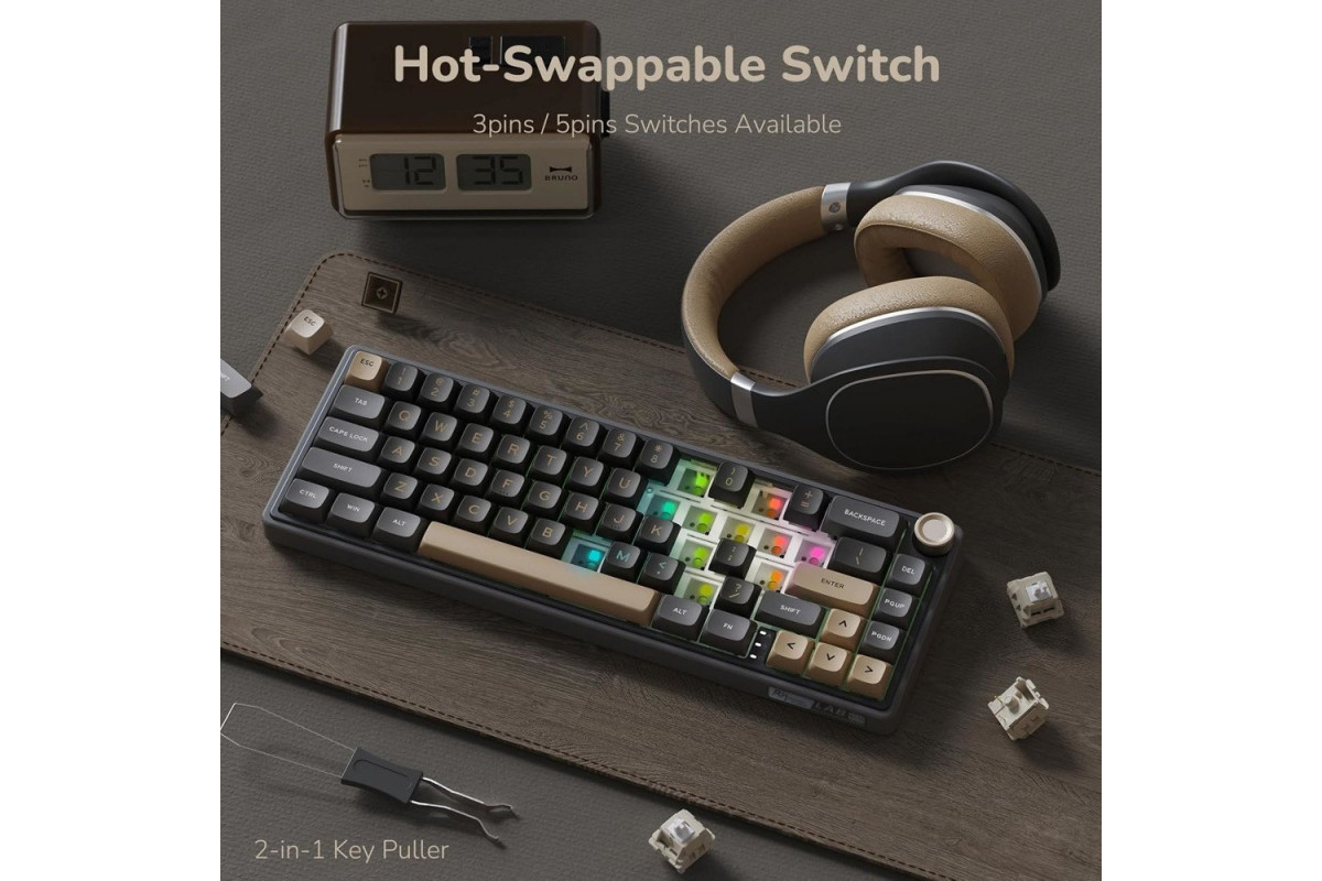 Royal Kludge R65 RGB Phantom laidinė mechaninė klaviatūra | 60%, Brown switches, US