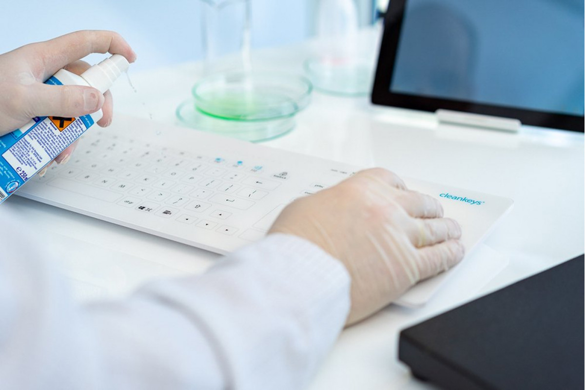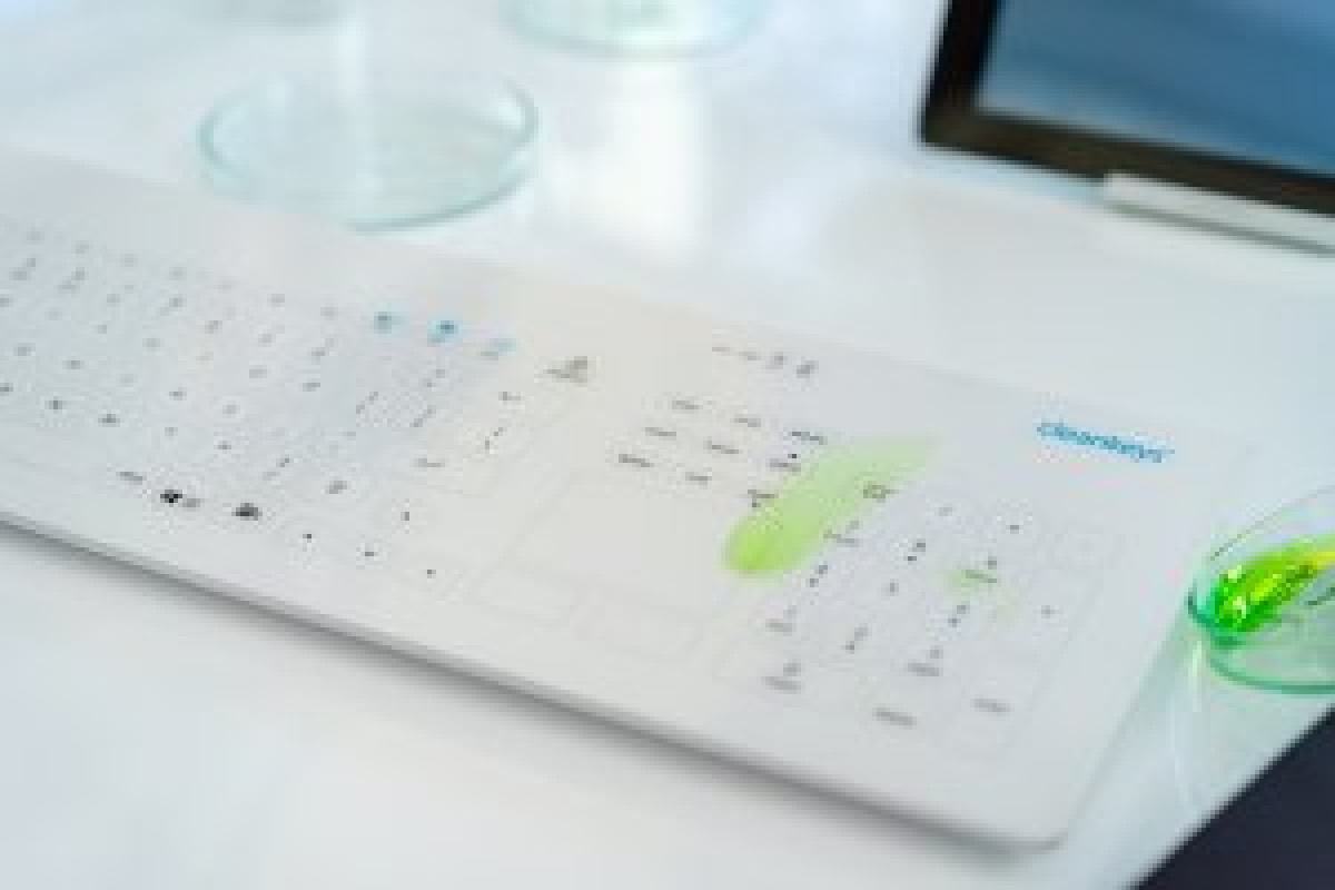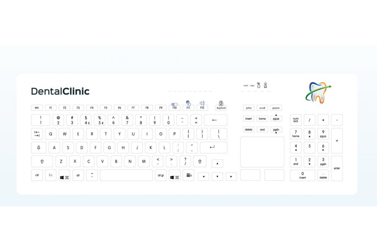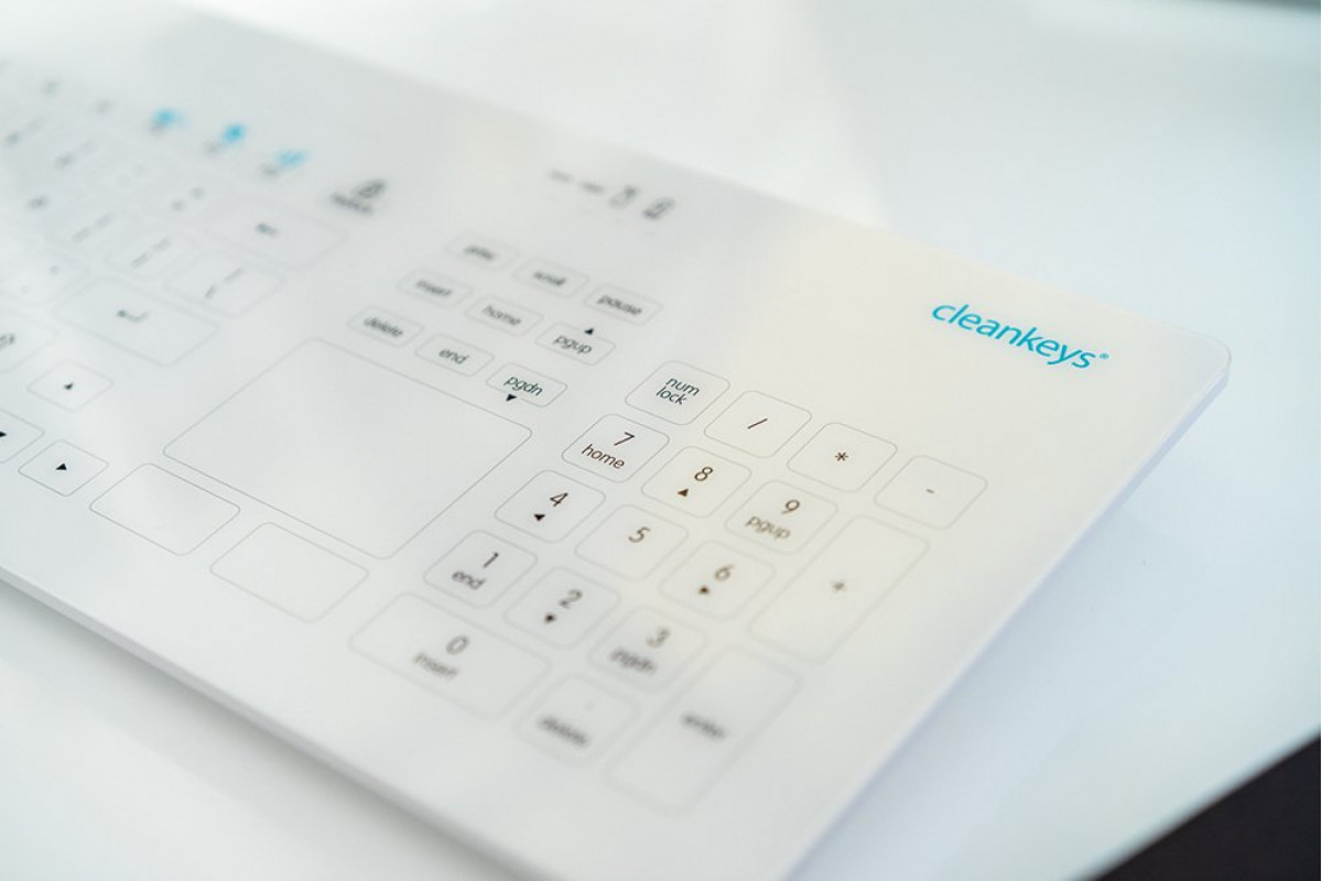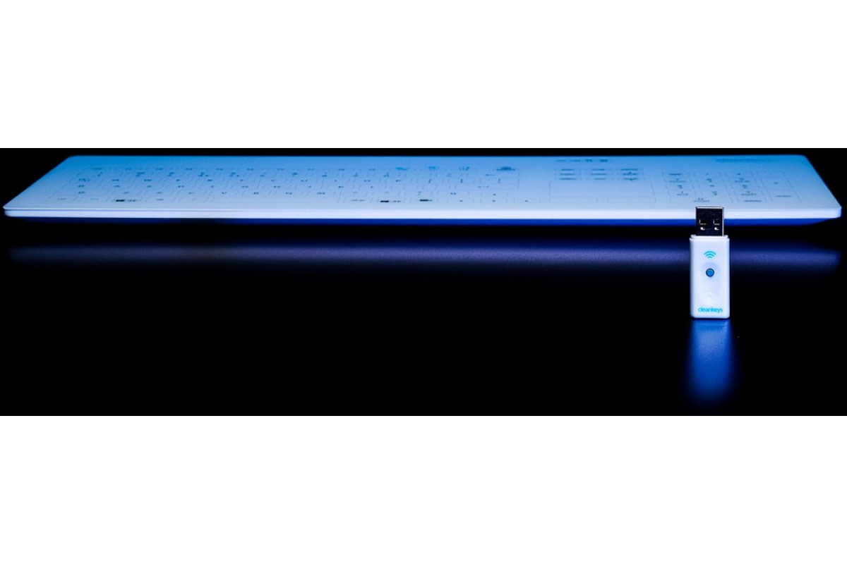 CleanKeys GETT CLEANKEYS CK4 KABELLOS 2,4Ghz klawiatura szklana pojemnościowa integr.Touchpad und NUM block IP65 można dezynfekować szkło Gorilla Układ: DE