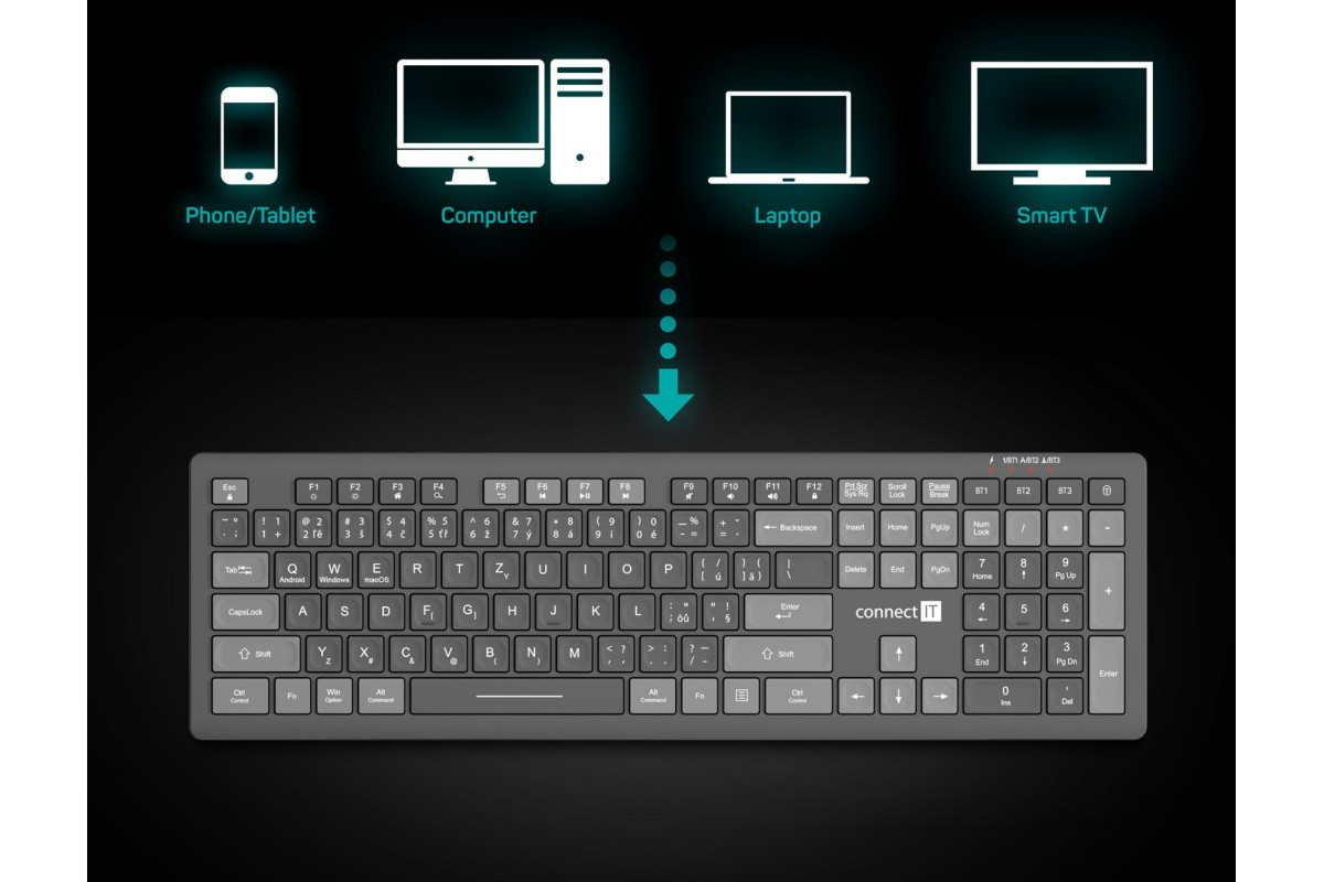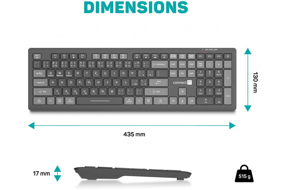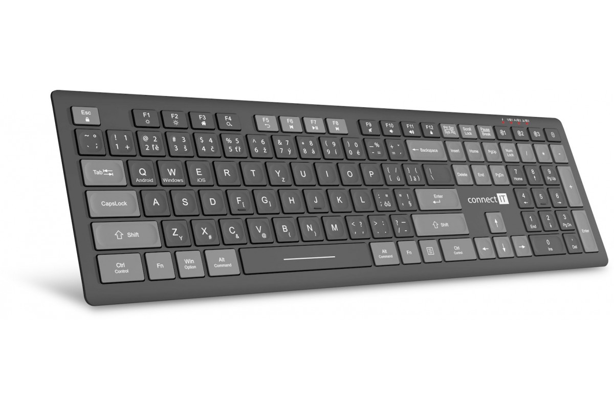 Connect IT CONNECT IT klawiatura biurowa MultiDevice, Bezprzewodowa, CZ + SK, szara