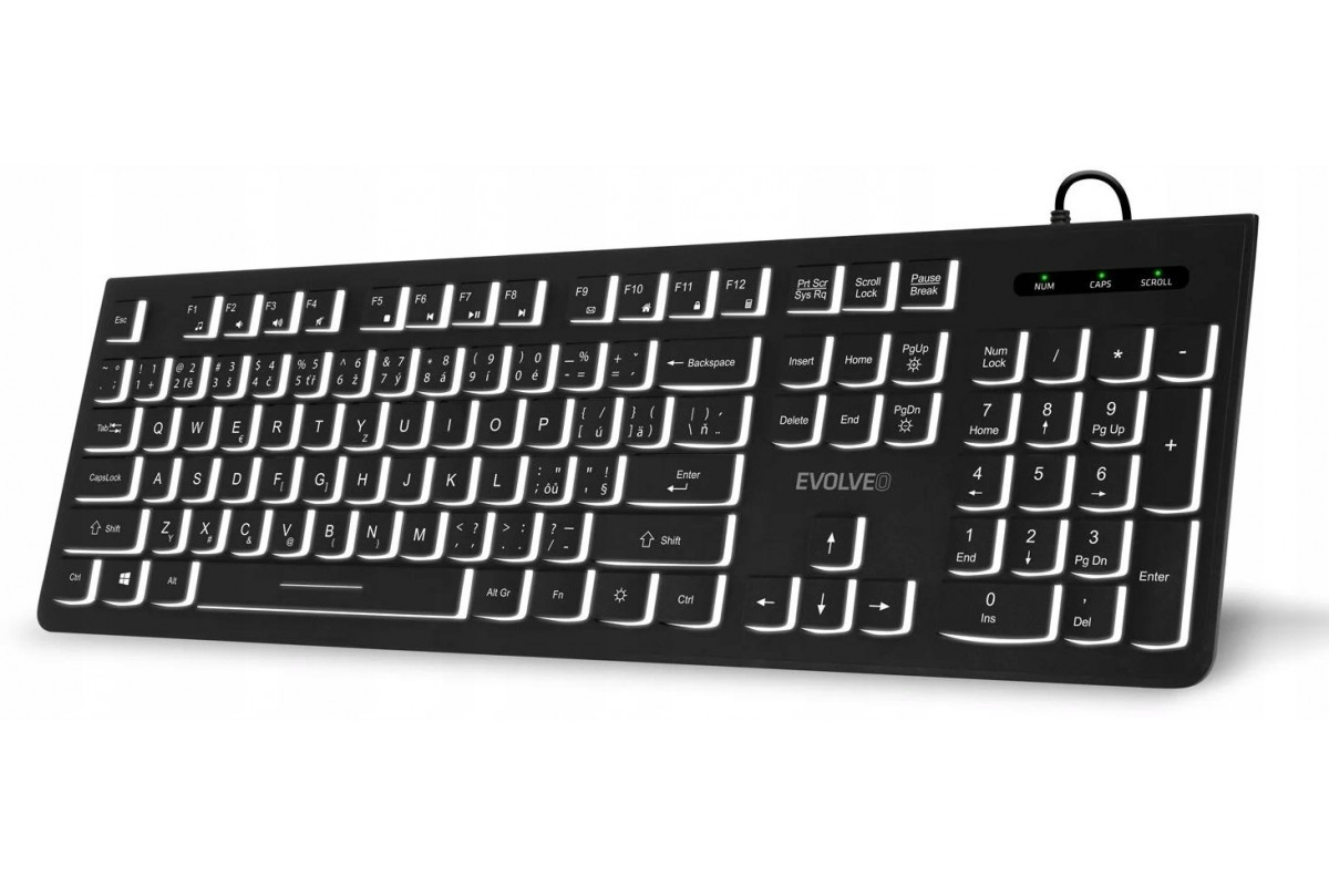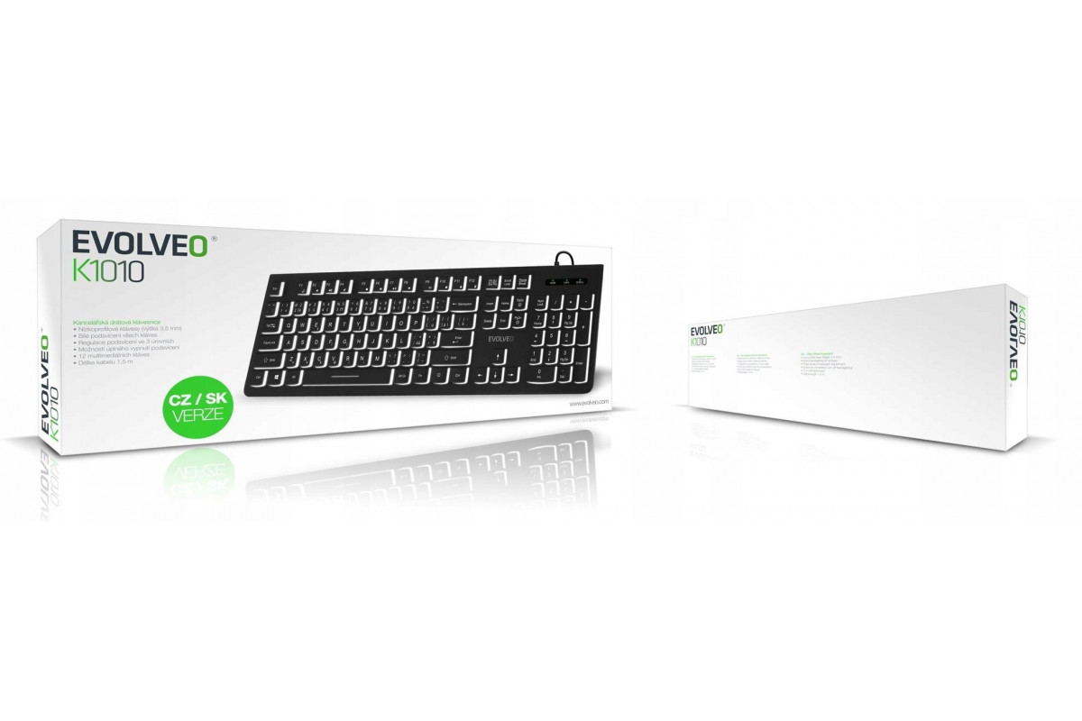 Evolveo EVOLVEO K1010 Cicha Przewodowa USB Podświetlenie CZ+SK Czarny