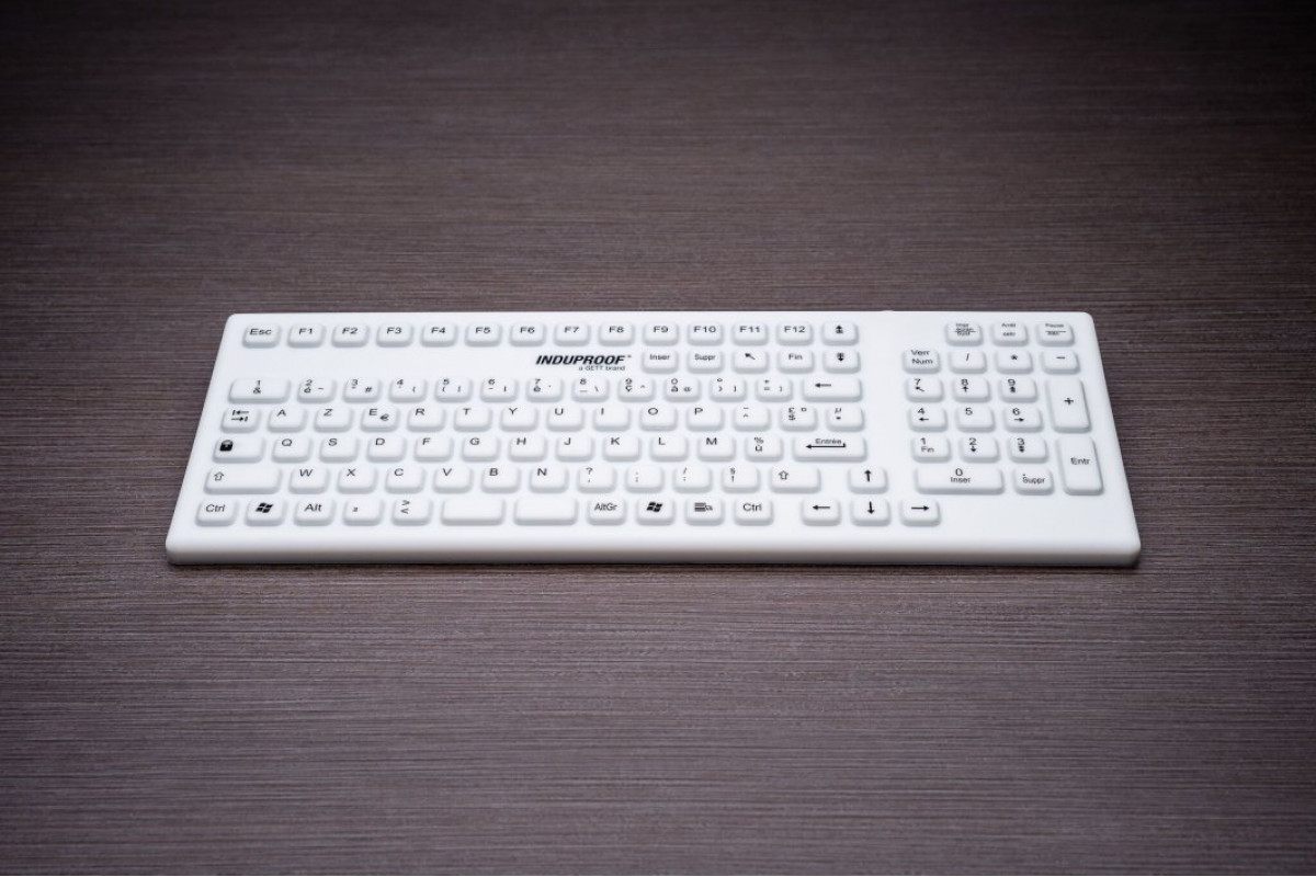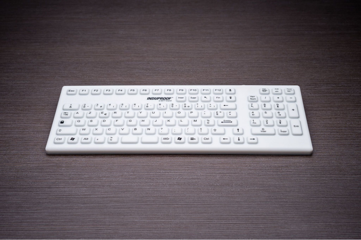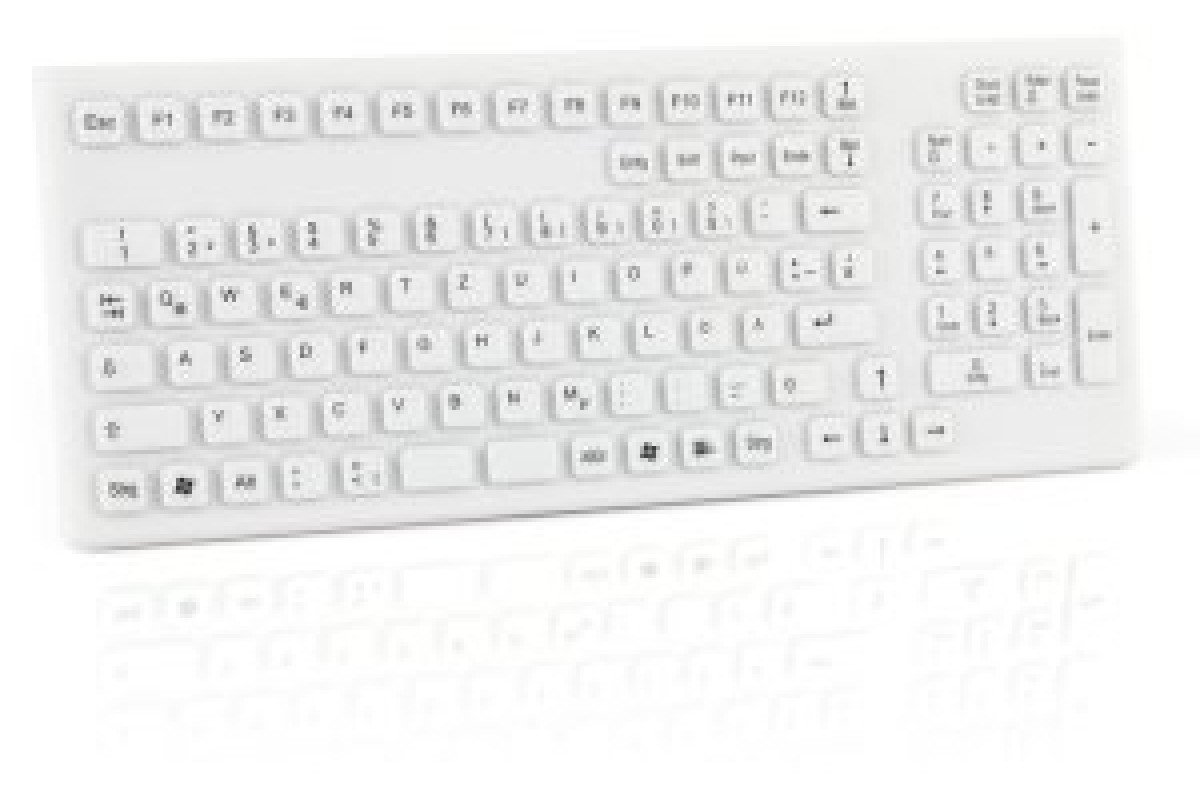 Gett GETT InduProof Smart Classic Silikonowa klawiatura z blokiem numerycznym 106 klawiszy IP68 wodoodporny można dezynfekować USB Kolor: biały Układ: DE