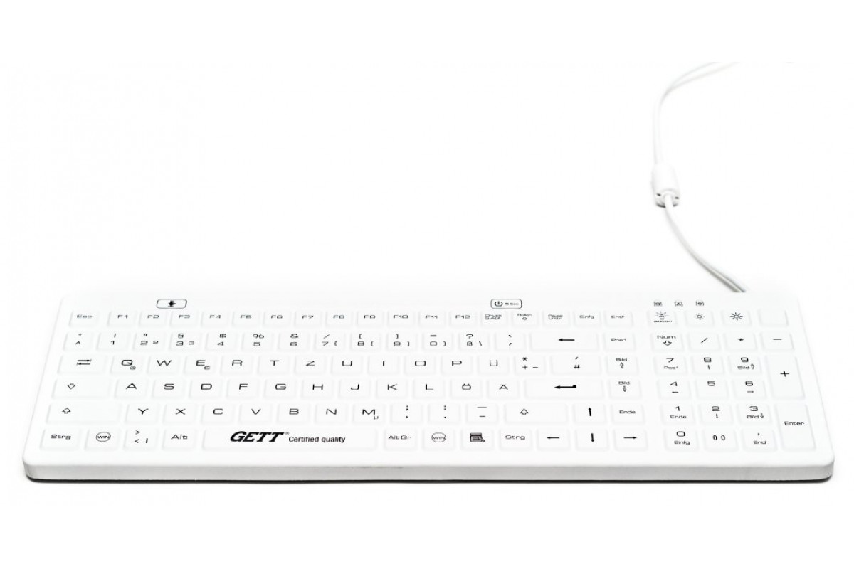 Gett GETT TKG-110-GCQ-MED-AM-IP68-BACKL-WHITE-USB - Keyboard - Backlit - USB - German - White