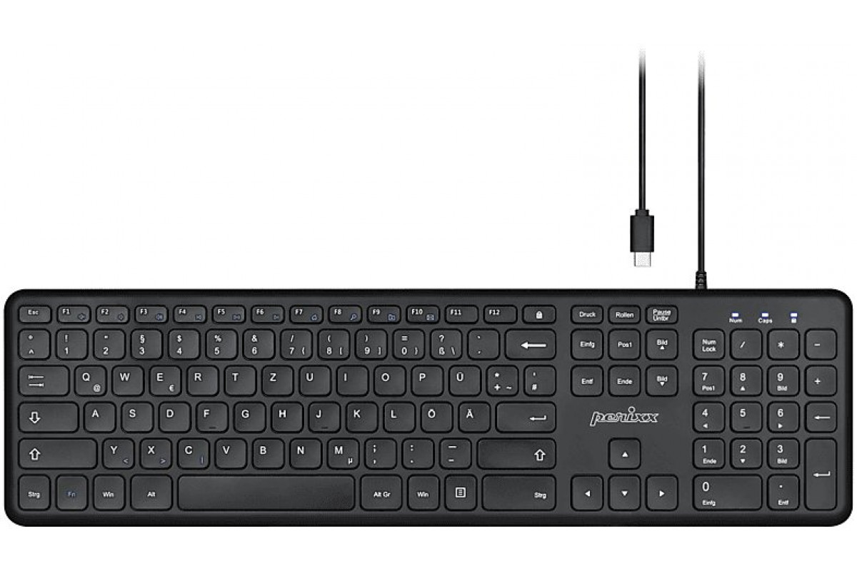 Perixx PERIBOARD-210, DE, USB-C, wired, silent keys, black (układ niemiecki)