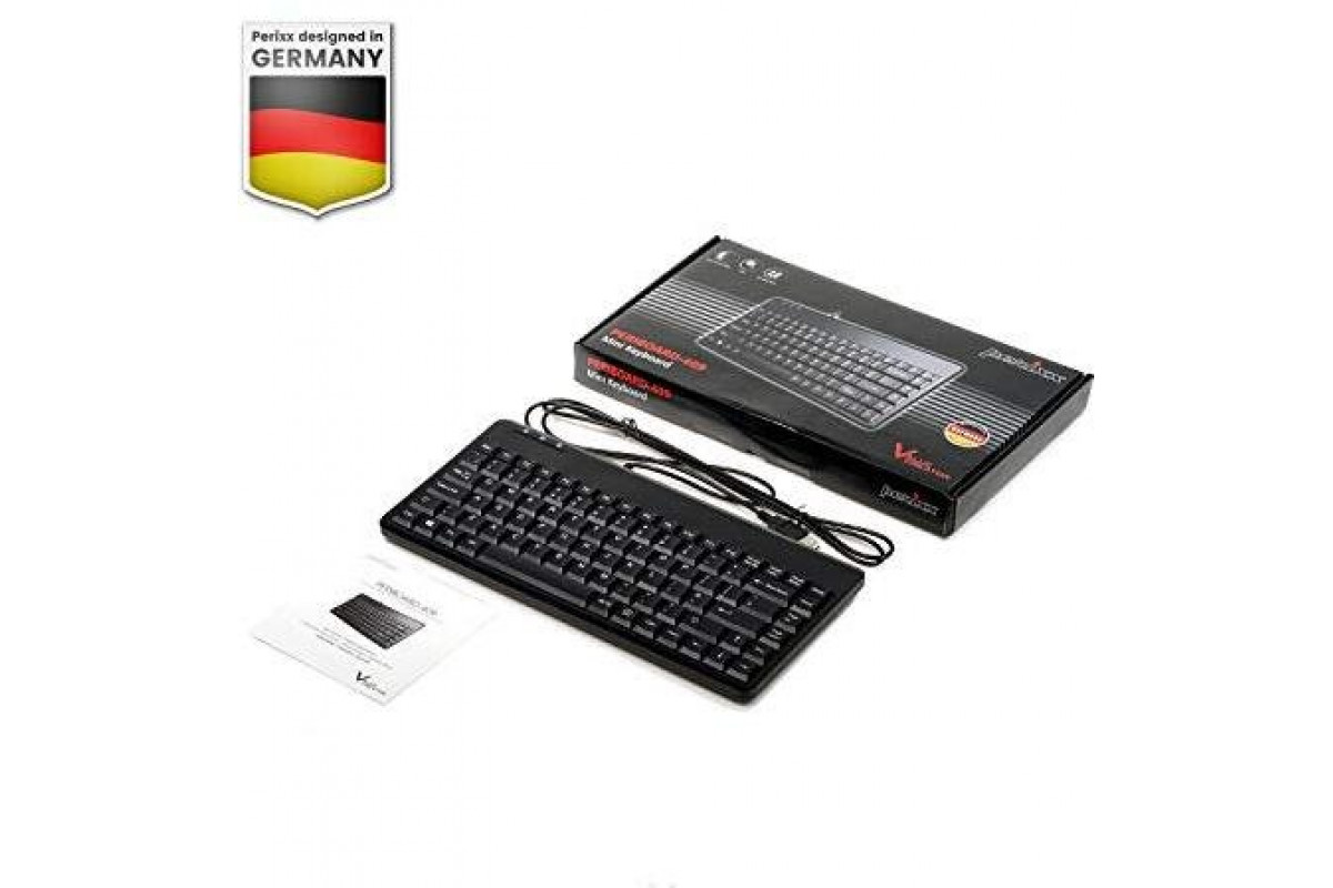 Perixx PERIBOARD-409 H, US, Mini USB-klawiatura, 2 Hubs, czarny (US-Layout)