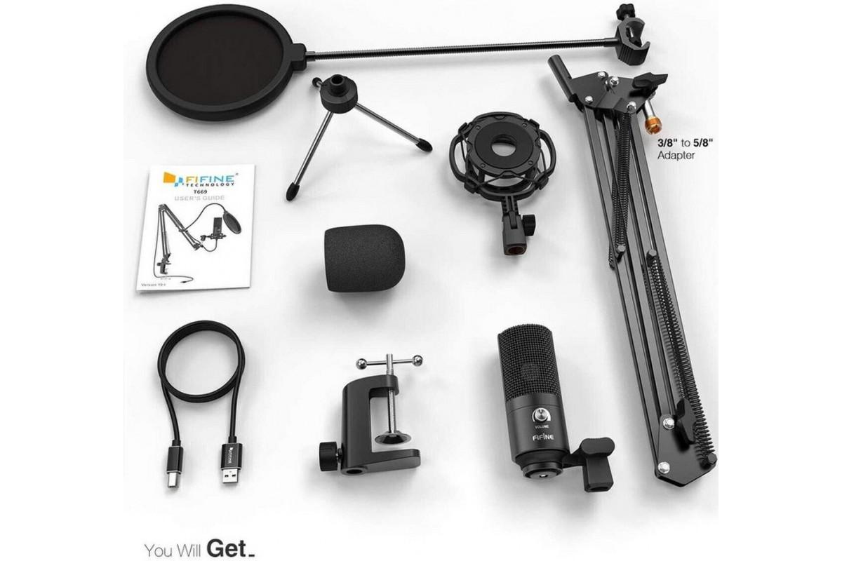 FIFINE T669 mikrofon przewodowy z statywem | USB