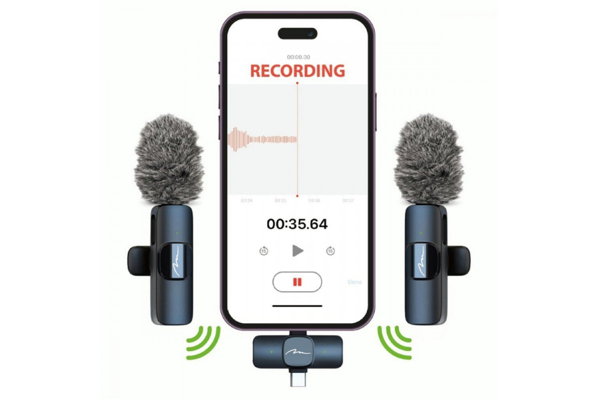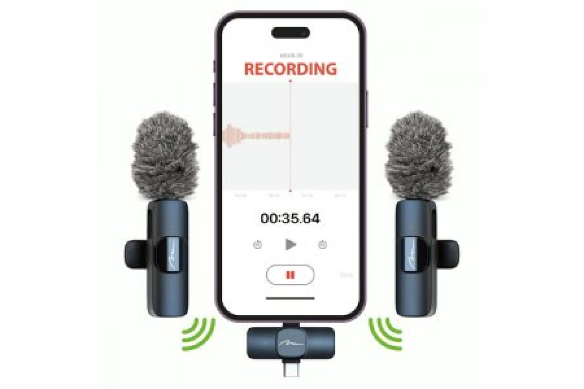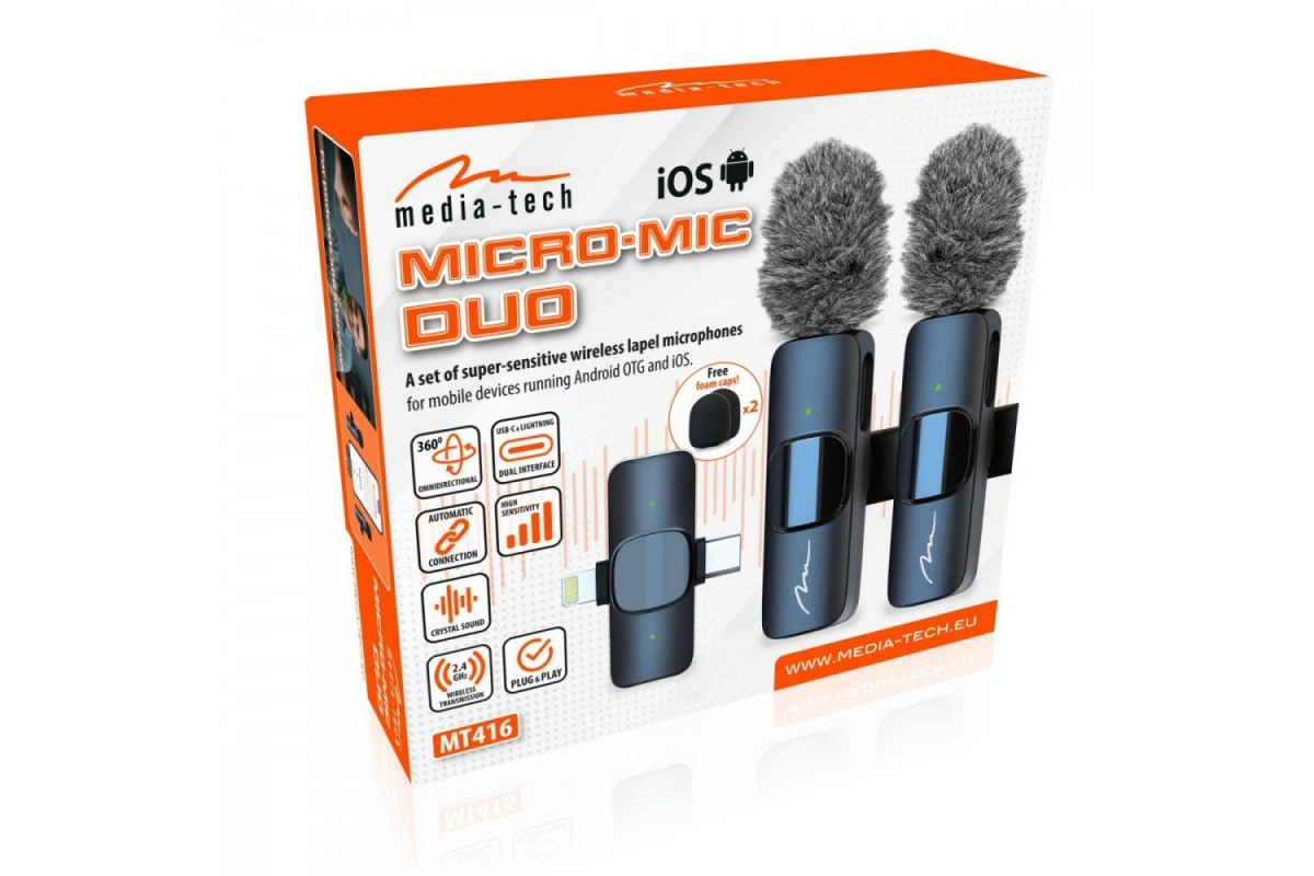 MICRO-MIC DUO - 2x Bezprzewodowy mikrofon krawatowy (zestaw), na klipsie, iOS & Android (OTG), mini, superczuły. USB-C & LIGHTNING