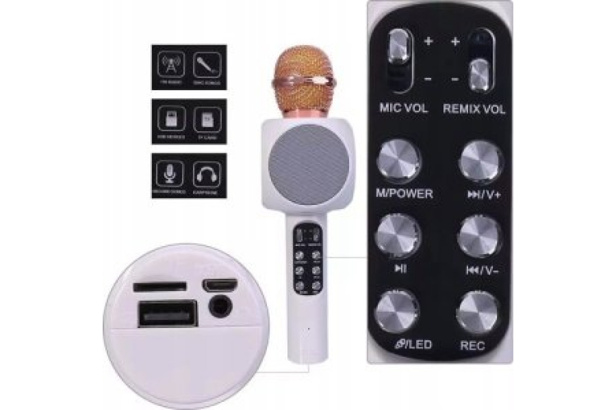 WS-1816 16W karaoke BT microphone with LED 360 White