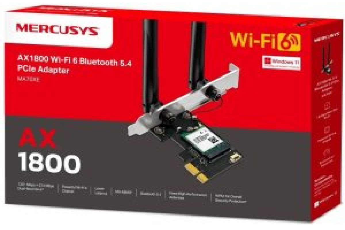 MERCUSYS MA70XE WiFi6E PCIe adapter (AX1800,2,4GHz/5GHz,Bluetooth5.4)