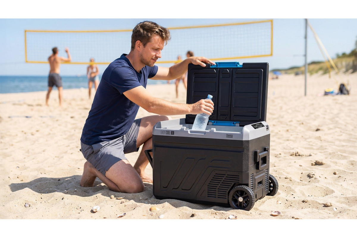 Teesa Profesjonalna lodówka turystyczna kompresorowa TEESA z funkcją mrożenia 50L DC12/24 AC 230V, duże koła i solidna rączka , Blueto