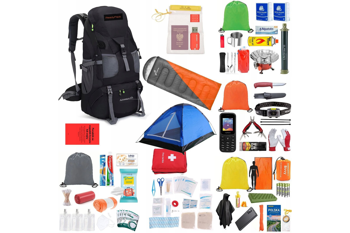 Plecak Ewakuacyjny + Wyposażenie ReadyPack X2 Zestaw Namiot Śpiwór Jedzenie/ ReadyPack X2 Black