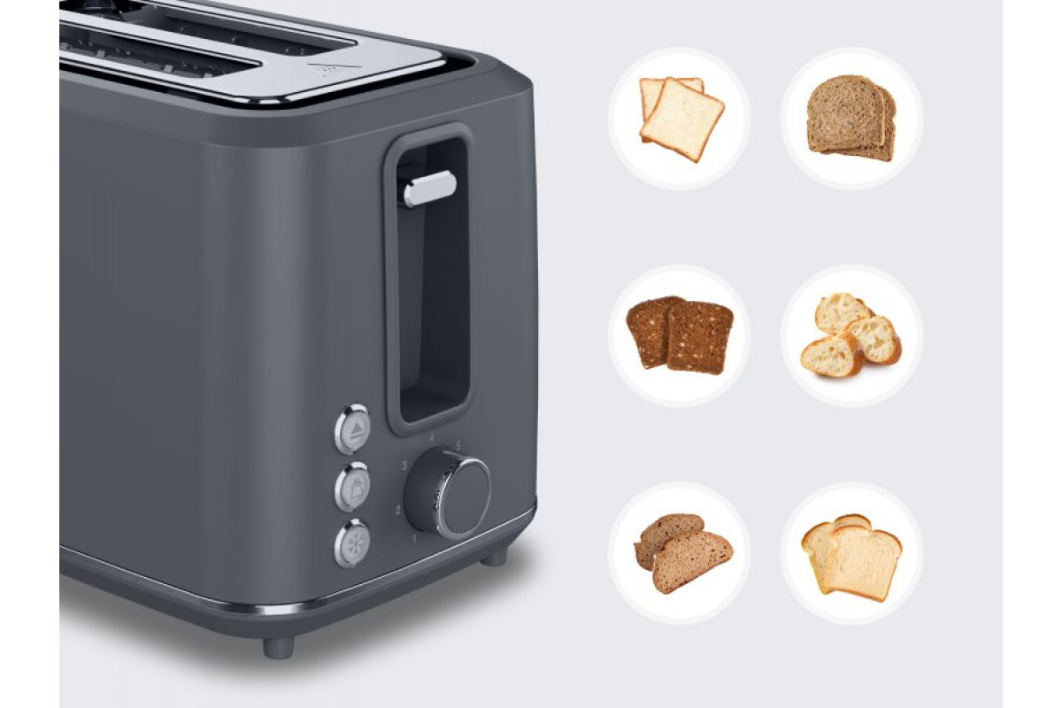 AENO 2-slice toaster TS1, 1000W, 7 toasting stages, extra toasting, grey