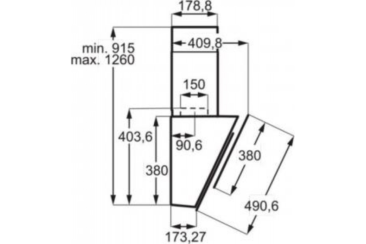 Tvaika nosūcēja augstums maksymalna
