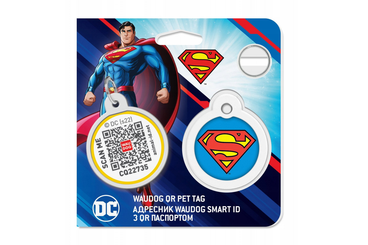 Collar WauDog Smart ID Zawieszka z QR-paszportem okrągła 3cm superman bohater