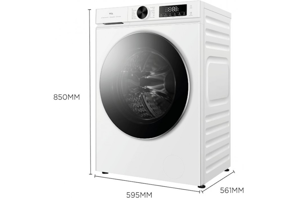 TCL TCL Washing machine | FP0944WA0 | Energy efficiency class A | Front loading | Washing capacity 9 kg | 1400 RPM | Depth 56 cm | Width 60 cm | Display | LED | Steam function | White