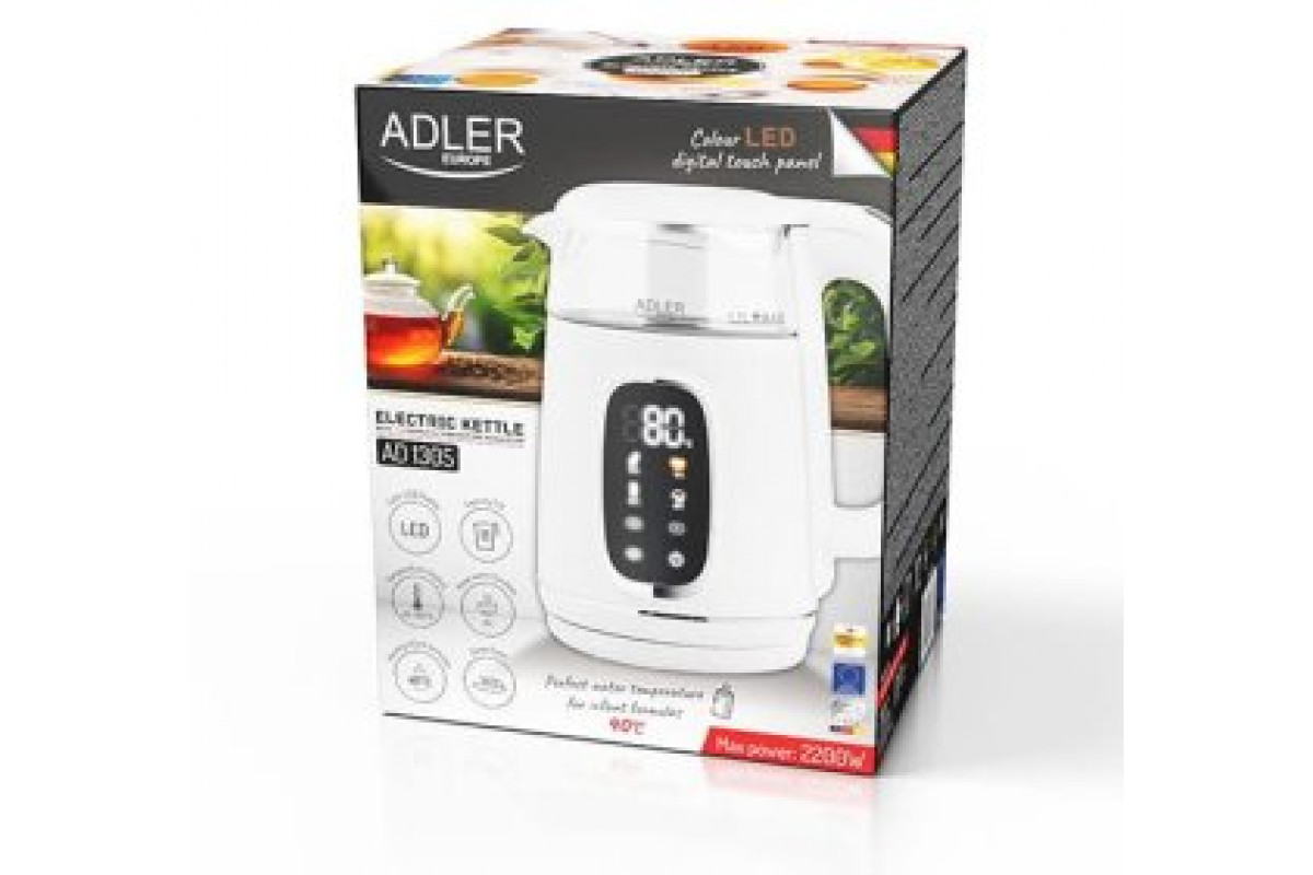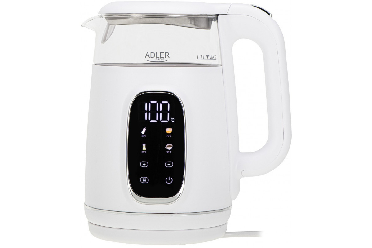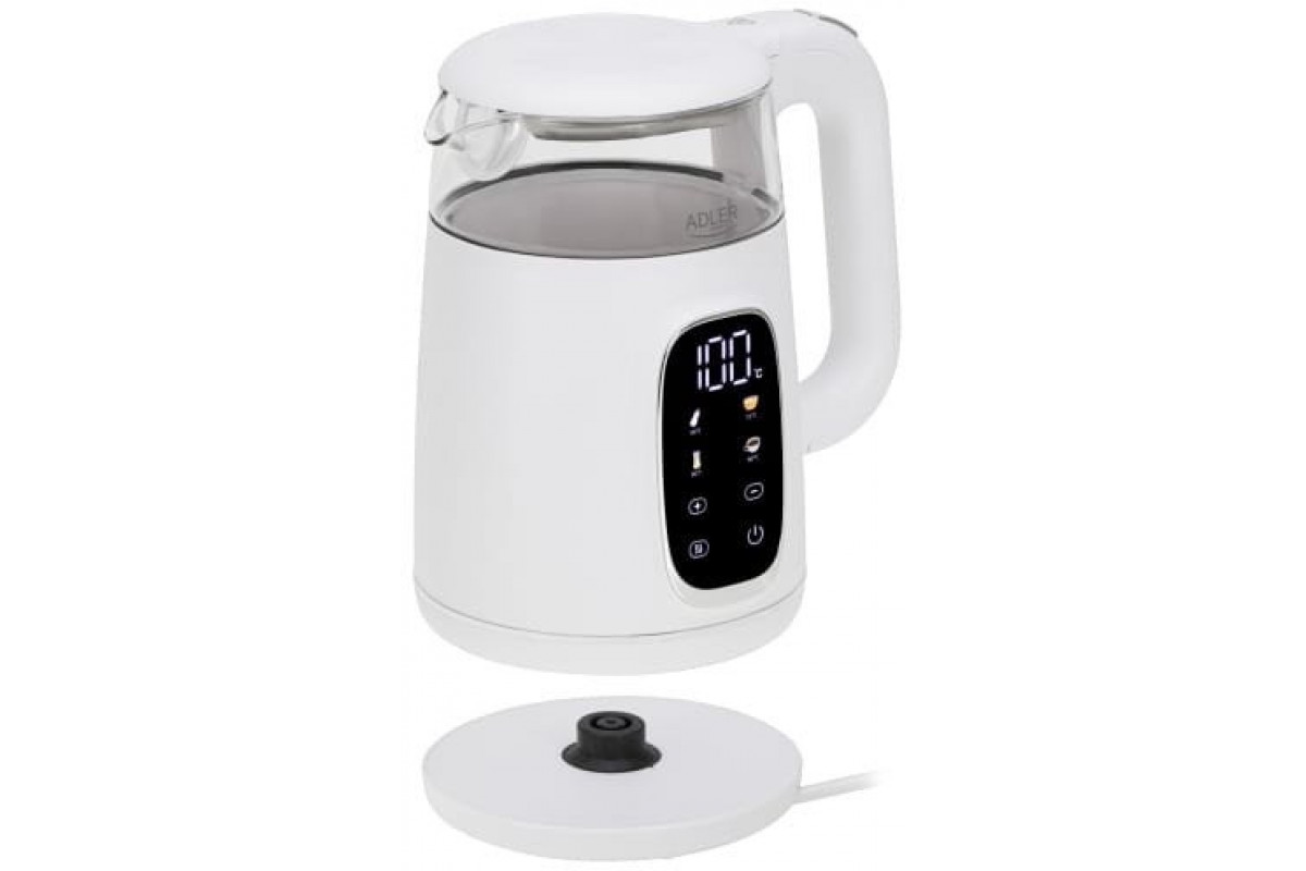 Adler elektryczny szklany LED z regulacją temperatury 1,7L AD1305 White/Silver