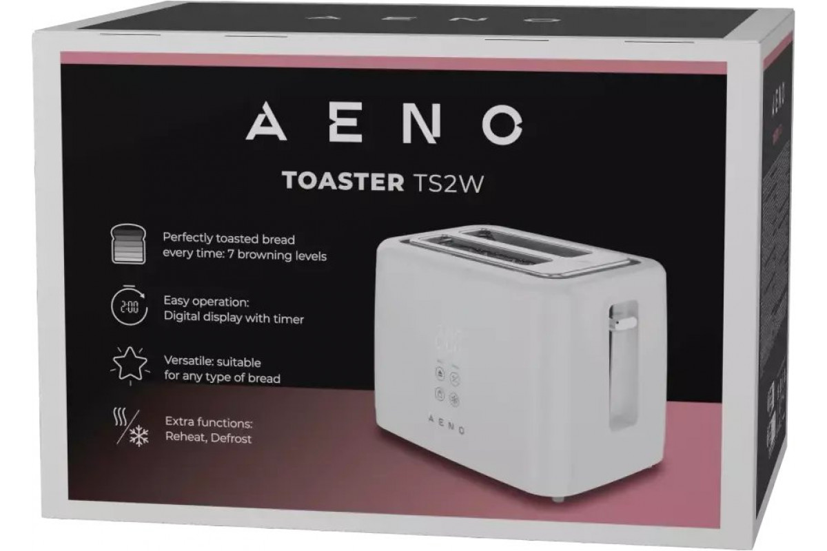 Electric Toaster, White, 220-240V, 50-60Hz, 780-930W, 2 slots, 3 modes, 7 browning levels