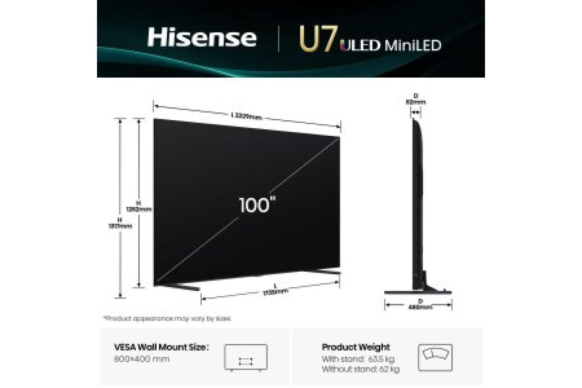 Hisense U7Q 100'' 4K UHD Mini LED melna - Televizors 100U7Q (6942351418414)